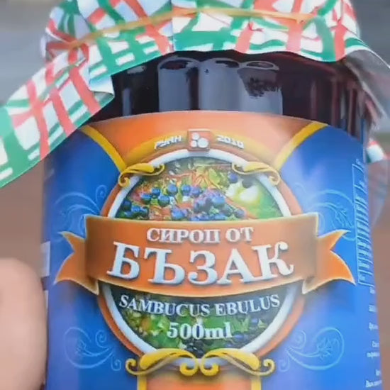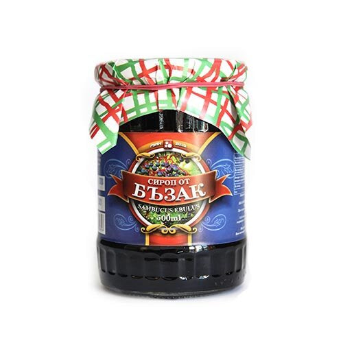 СЪСТАВ: студено пресован сок от тревист бъз (бъзак) Sambucus ebulus – 85%, захар.