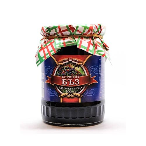СЪСТАВ: студено пресован сок от черен бъз (дървовиден) Sambucus nigra – 85%, захар.